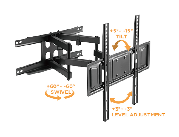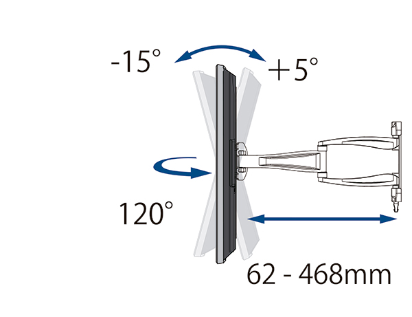 JUSWEL 32-70インチ対応フルモーションマウント(税込¥13,200) 32-70インチ対応フルモーションマウント 壁掛け金具 (JWF-M46H) 販売価格(税別)¥12,000( 税込¥13,200 )在庫状態 : 在庫有りJWF-M46H JUSWEL 超薄型フルモーションウォールマウント 耐荷重:40Kg、適合テレビサイズは32〜70インチが目安です。 JUSWEL JWF-M46Hは、最大重量40kgまでの32インチ〜70インチフラットパネルテレビ用のフルモーションマウントです。 壁からテレビ背面まで約62mmの設置ができ、アームは最大468mmまで伸ばすことができます。 また、左右各60°/上下各15°の角度調整に加えて、水平の調整によりベストの位置でテレビ視聴が可能です。 すっきりとした外観と頑丈な作りが特徴です。 75×75〜400x400mmのVESA穴に対応。 【 スペック 】 対応テレビサイズ:32 – 70 V型 耐荷重:40.0 kg 本体質量:5.2 kg パッケージ重量:5.7 kg 幅:47.5 cm 奥行き:6.2 〜 46.8 cm 高さ:42.0 cm 型番 / JANコード: JWF-M41H / 4589865232130 ティルト(上下動作)15° / -15° スウィーベル(左右動作)60° / 60° マウントパターン:幅:75 – 400mm、高さ:75 – 400mmまでのユニバーサル 75×75 100×100 200×100 200×200 300×200 300×300 400×200 400×300 400×400 〇 〇 〇 〇 〇 〇 〇 〇 〇 フルモーションマウント フルモーションマウントは、上下左右の角度調節、前後方向の調節など、あらゆる方向にテレビの向きを調節できます。この機能により部屋の間取りや窓の位置により、テレビを適切な位置に設置することが難しい場合に適しています。 ※フルモーションマウントは、左右前後に動かせるという構造上テレビが少し傾くことがあります。 数量 前 JUSWEL 23-55インチ対応<br>フルモーションマウント<br><strong>(税込¥18,150)</strong> 最近 JUSWEL 37-90インチ対応<br>フルモーションマウント<br><strong>(税込¥31,900)</strong> こちらもおすすめ JUSWEL 37-90インチ対応フルモーションマウント(税込¥31,900) 2022年2月22日 SANUS 40-140インチ対応フルモーションマウント(税込¥41,800) 2025年11月10日 JUSWEL 23-55インチ対応フルモーションマウント(税込¥18,150) 2022年2月22日